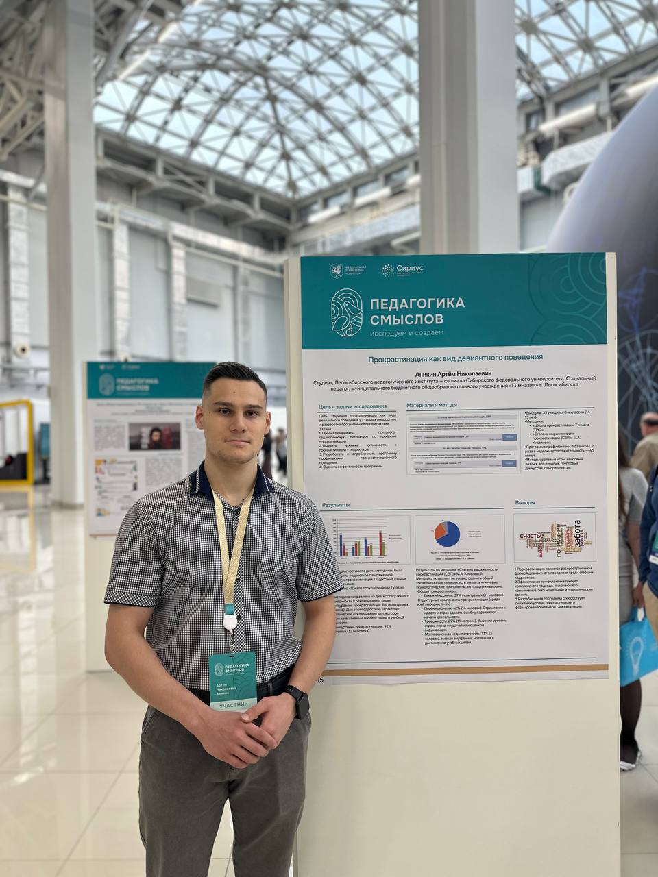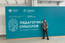 Артем Аникин, студент 4 курса специальности 44.05.01 «Педагогика и психология девиантного поведения», представил свое научное исследование на первом Всероссийском форуме «Педагогика смыслов» Научно-технологического университета «Сириус», который проходил 29 октября — 1 ноября 2025 года.