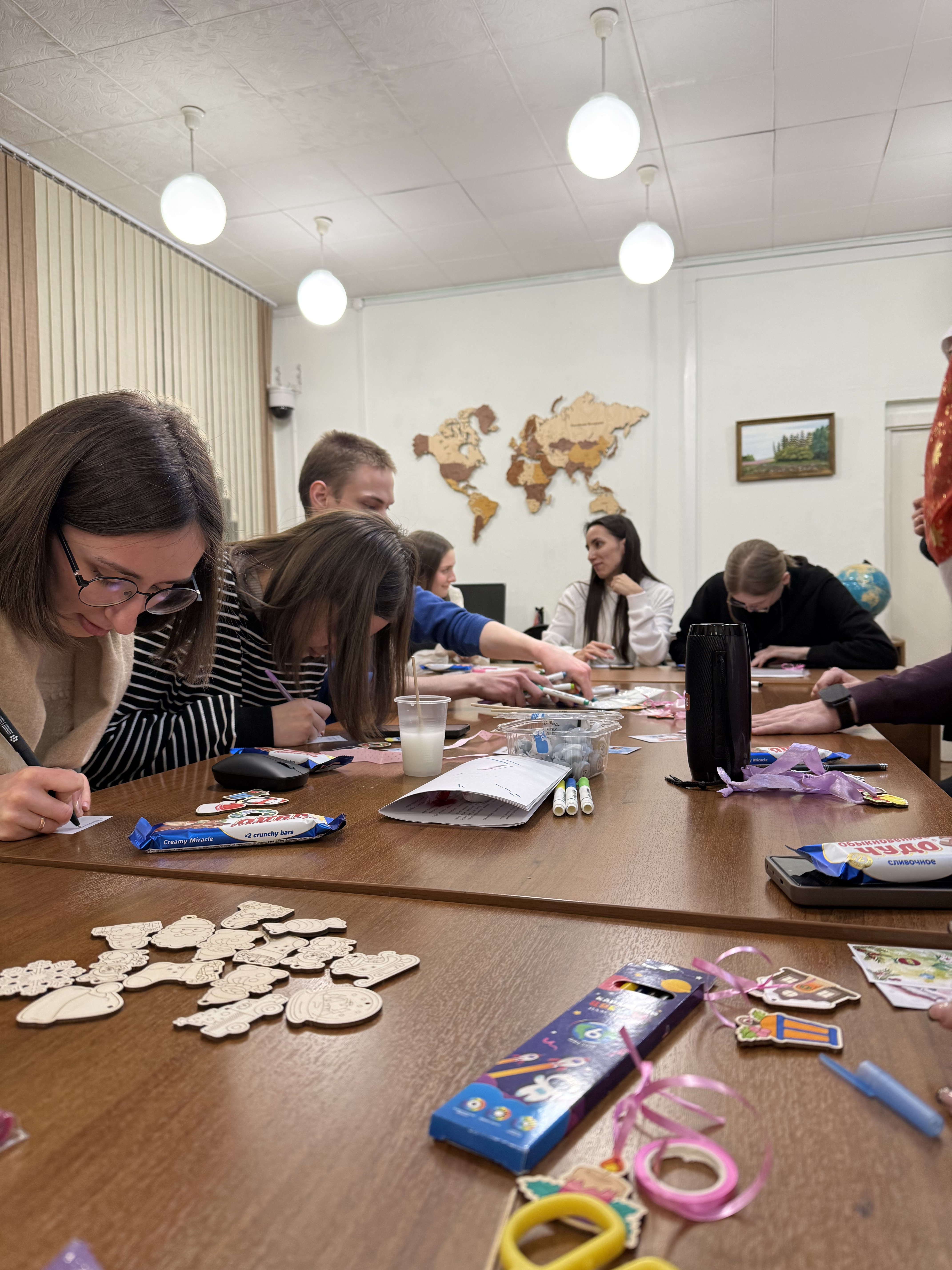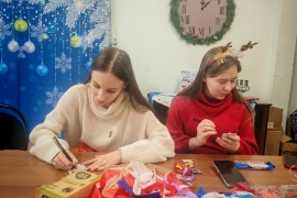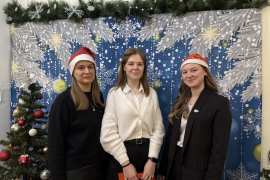 Куратор СНС Яна Николаевна Казанцева и председатель СНС Виктория Липинская поздравили студентов, ставших лауреатами стипендии Правительства РФ (Аникин А., Вавилова А., Гладышева А., Липинская В.) и СФУ «Будущее науки» (Шелкунов П., Филиппенко Я.). Для участников был организован мастер-класс по росписи новогодних игрушек, которые стали символом украшения общей «Ёлки научных достижений».