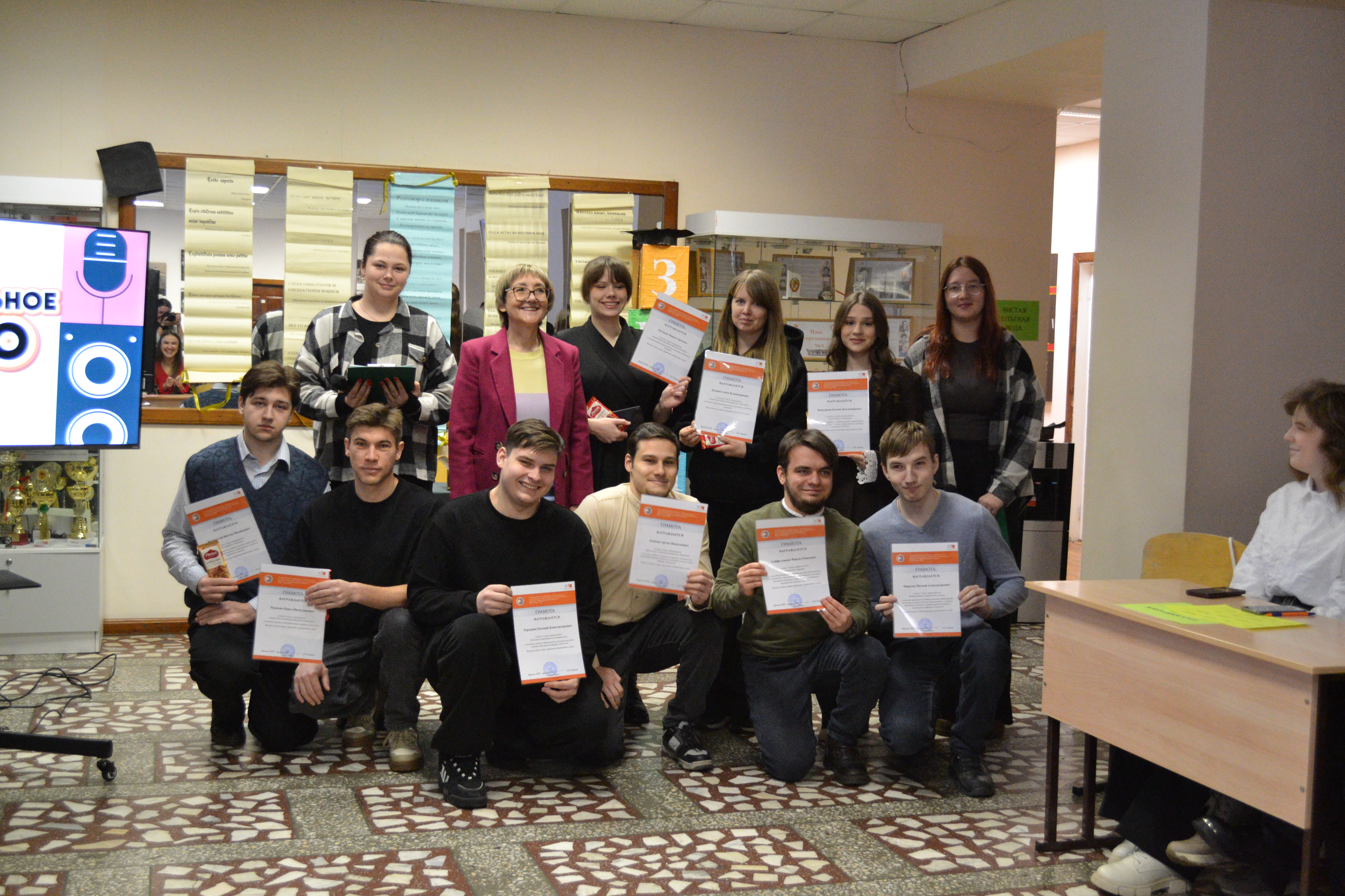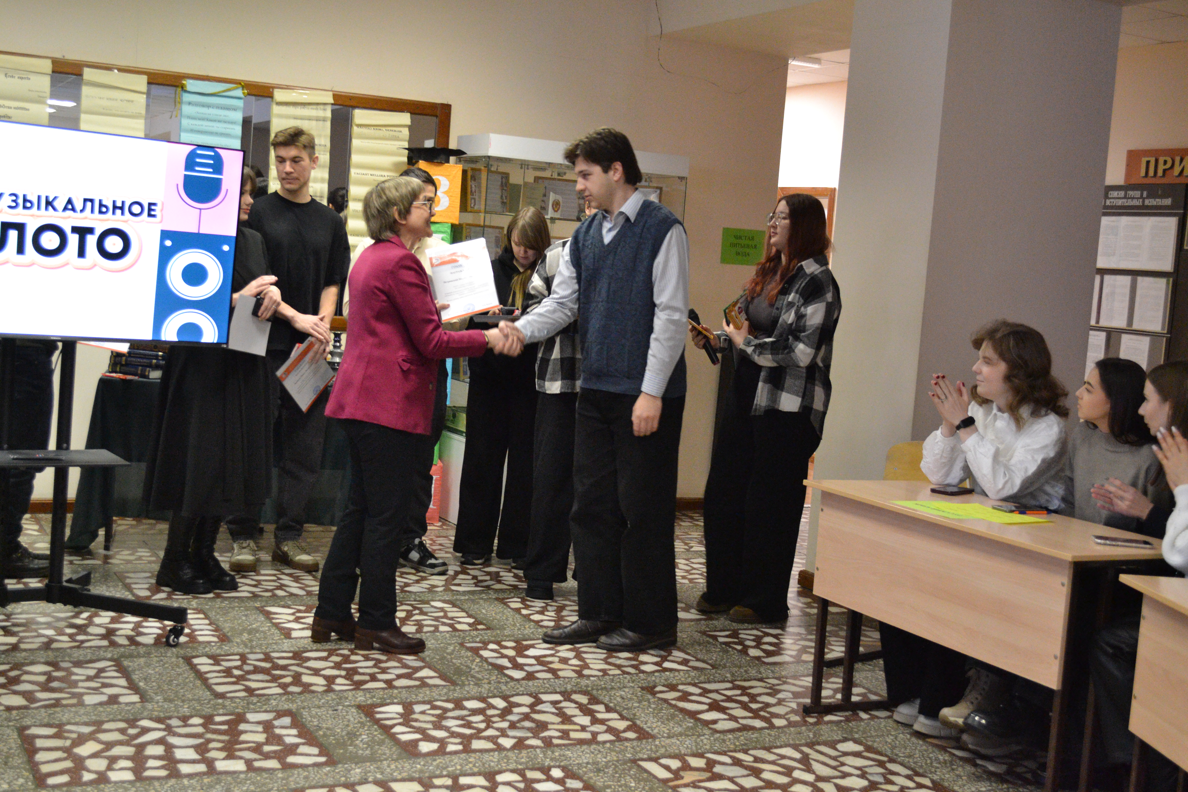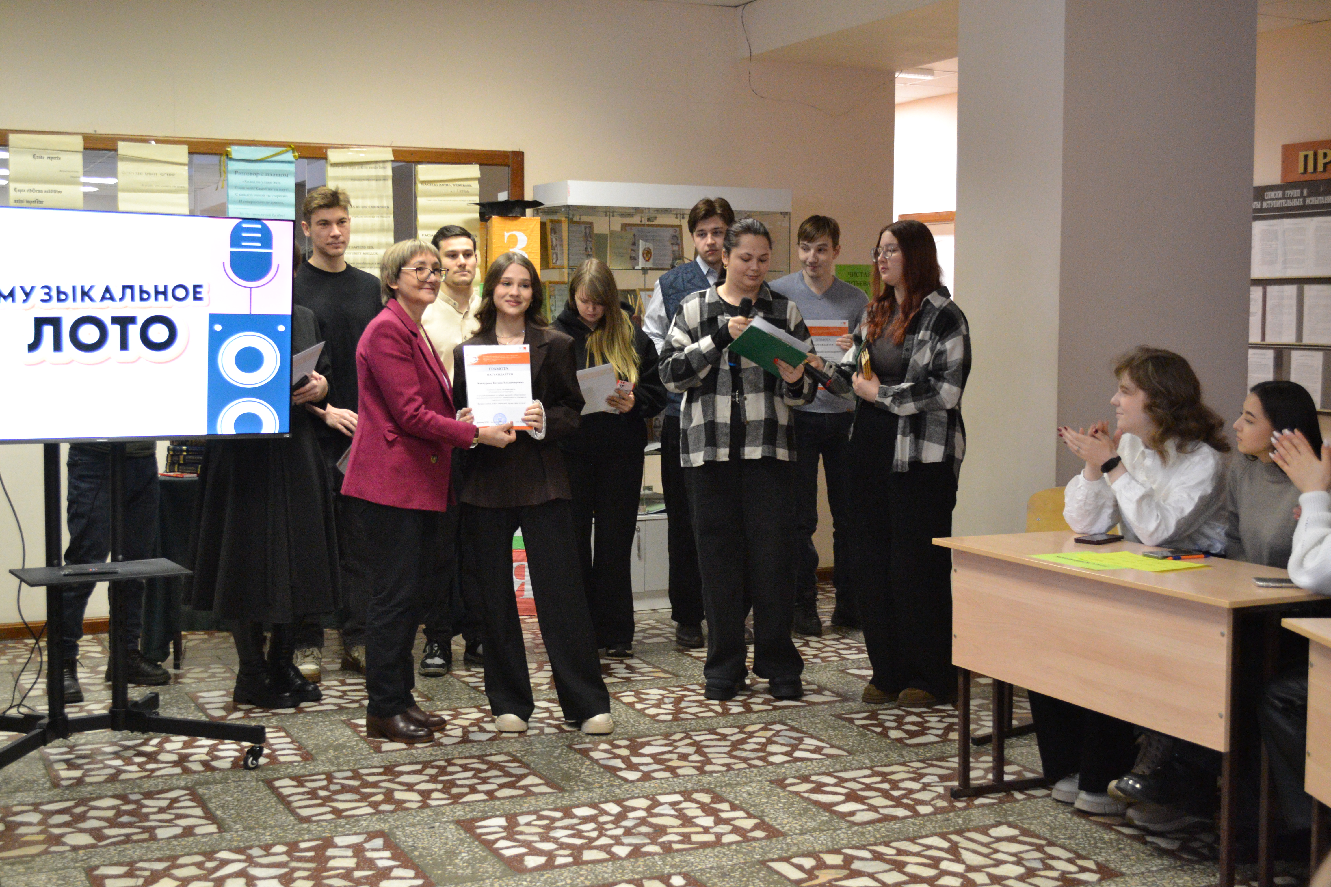 Кульминацией праздника стала увлекательная командная игра «Музыкальное лото». Студенты и преподаватели с азартом пели хиты разных лет, создав в фойе института атмосферу настоящего праздника и единения.