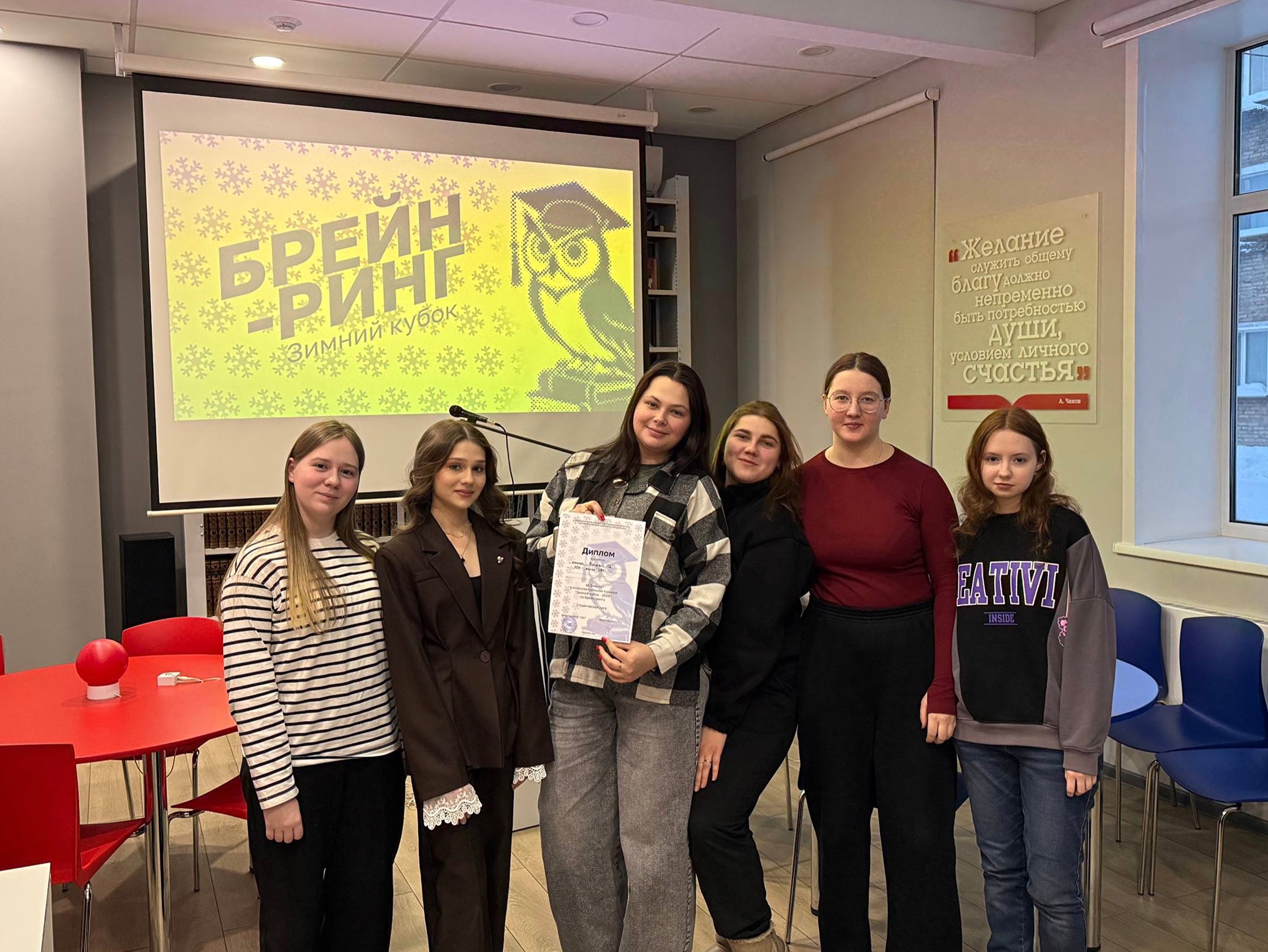 6 февраля студенты ЛПИ – филиала СФУ приняли участие в городском турнире «Зимний кубок» по брейн-рингу среди студенческих команд города Лесосибирска. Турнир был организован городской библиотекой им. А.П. Чехова г. Лесосибирск