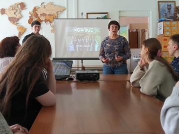 Сегодня в библиотеке состоялась встреча первокурсников, посвященная празднику весеннего равноденствия — Наврузу, в соответствии с традициями и культурой Киргизии. Организаторами выступили доцент кафедры высшей математики, информатики, экономики и естествознания О.А. Ефиц и заведующая библиотекой М.С. Севрюк. История обрядов очищения и обновления, виртуальная кулинарная выставка, знакомство с народными играми помогли участникам правильно ответить на вопросы викторины.