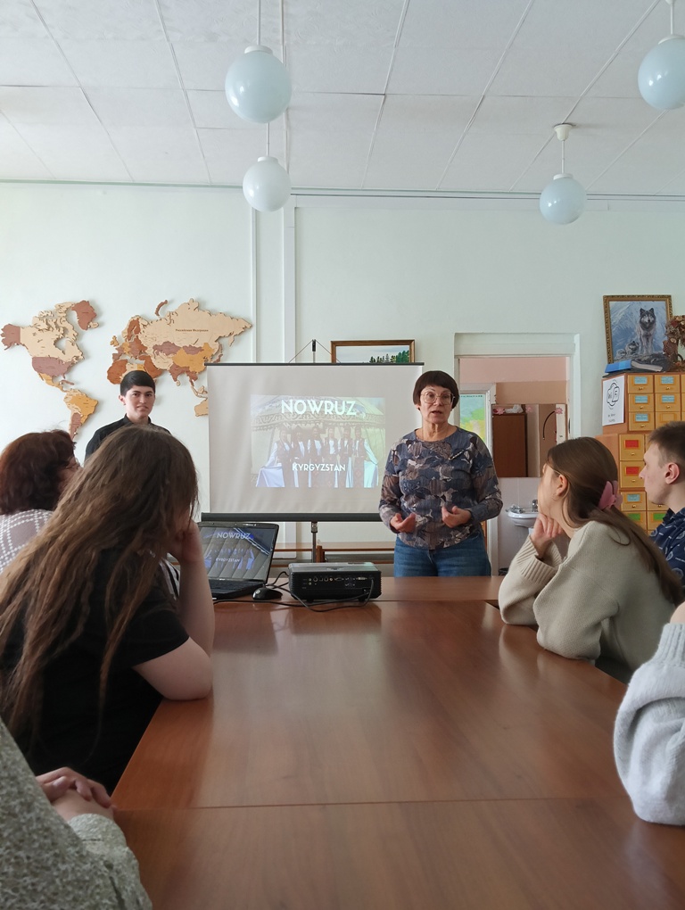 Сегодня в библиотеке состоялась встреча первокурсников, посвященная празднику весеннего равноденствия — Наврузу, в соответствии с традициями и культурой Киргизии.