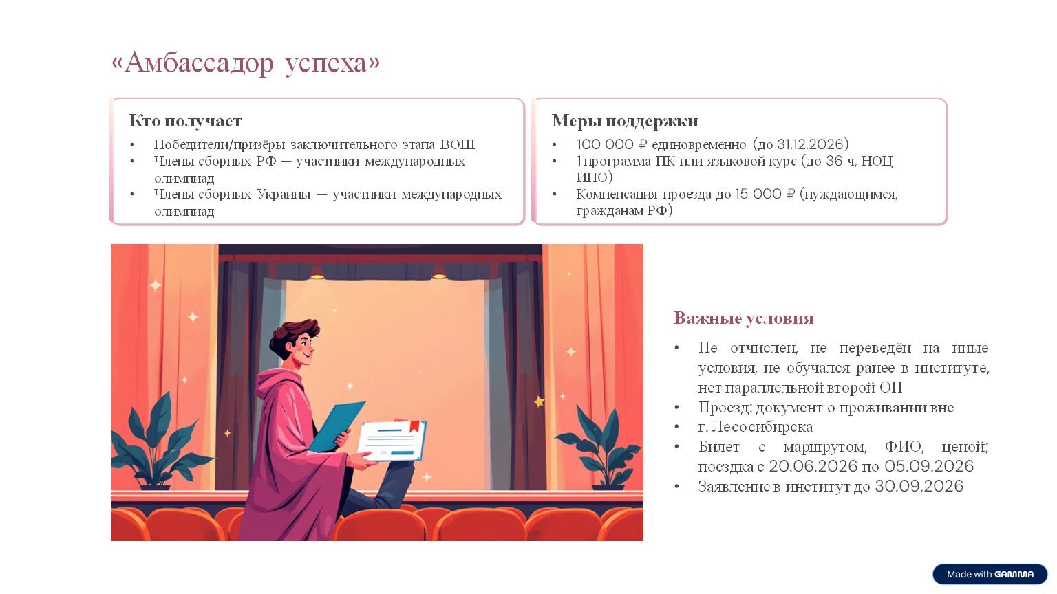 Льготы и особенности приёма